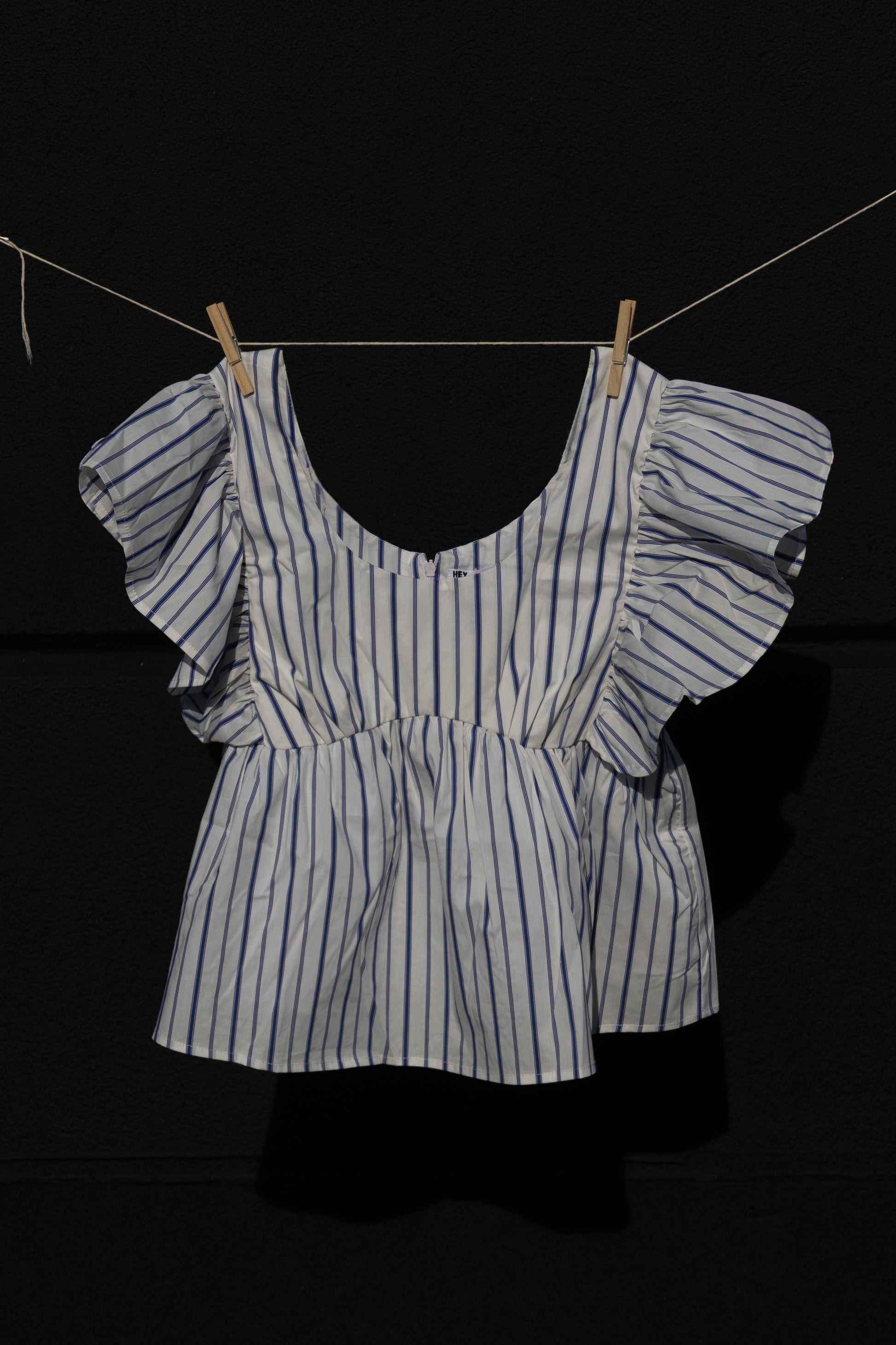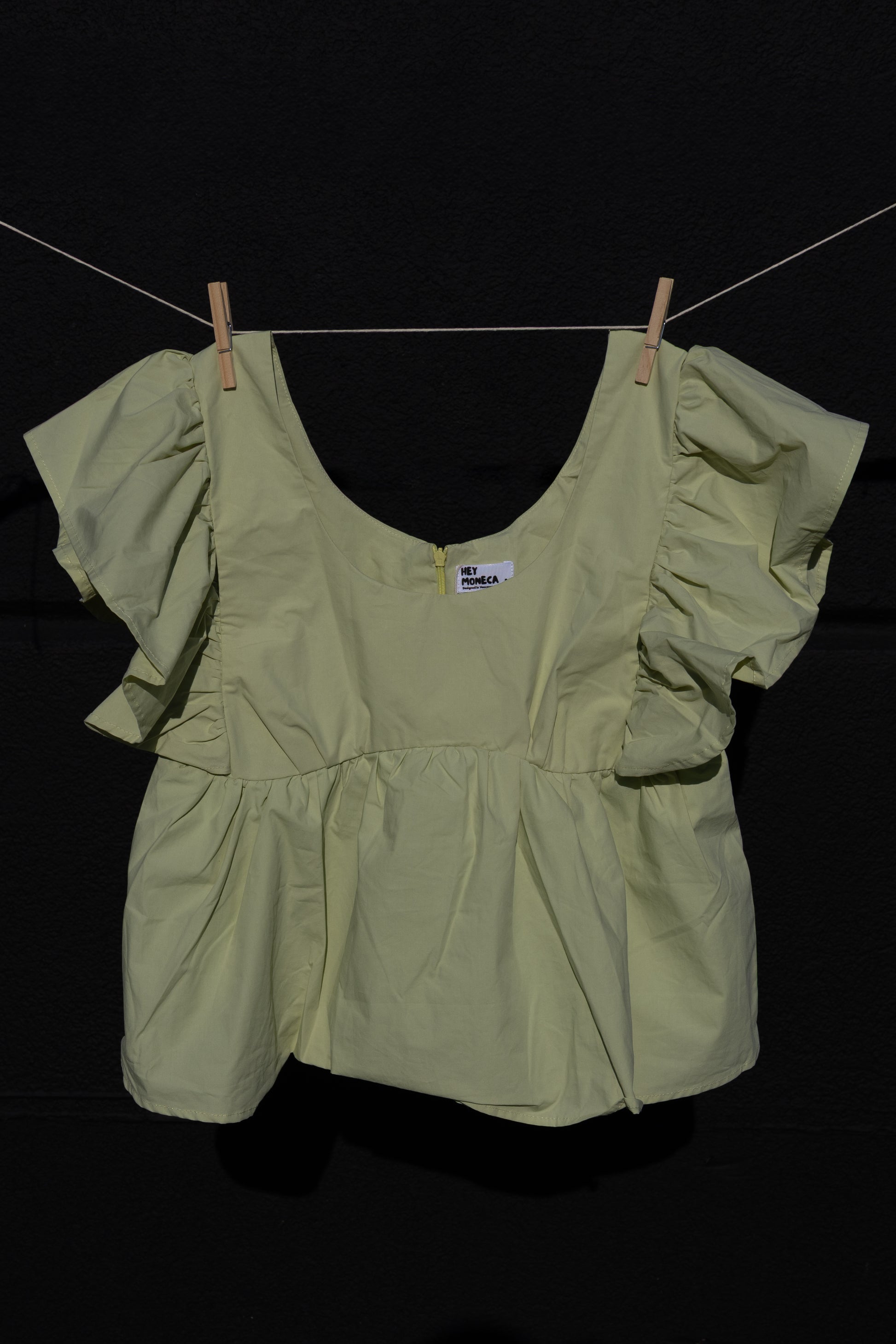 Short-sleeved 100% cotton poplin top featuring ruffled sleeves and a peplum hem. Designed with a flattering bust shape and a u-neckline for effortless, stylish wear.